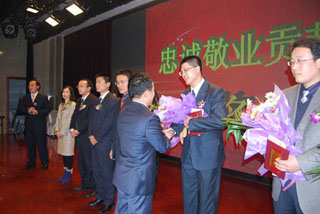 同時湯經(jīng)理向與會人員描繪了公司未來發(fā)展的宏偉畫卷:公司將繼續(xù)高舉健康的旗幟,為提高大眾的健康水平及幸福指數(shù)而不斷努力,把新稀寶股份建設(shè)成救人的企業(yè)、有“家”的氛圍的企業(yè)、有文化底蘊的企業(yè),使公司持續(xù)、健康、穩(wěn)定、有序地發(fā)展;大力做好網(wǎng)絡(luò)宣傳推廣,將跟風仿冒產(chǎn)品擠出互聯(lián)網(wǎng);以優(yōu)勢資源提升競爭力;繼續(xù)立足于微量元素行業(yè),以創(chuàng)新謀求發(fā)展,不斷開發(fā)、研制出新的微量元素補充制劑,為人類健康做出更大的貢獻!湯經(jīng)理的講話激情澎湃、鏗鏘有力,他充滿熱情的話語,寄托飽含著激勵和希望的真誠祝愿,使全體與會者受到了莫大的鼓舞。接下來,晚會進入了令人振奮、激動人心的頒獎環(huán)節(jié),各獲獎人員及獲獎團隊走上領(lǐng)獎臺,從頒獎嘉賓手里接過燙金的證書、鮮花、錦旗及獎品,會場上響起了陣陣掌聲,每一位獲獎人員的臉上都洋溢著自豪的笑容。曾經(jīng)的播種與耕耘,曾經(jīng)的辛勞與汗水都在這個春天里化作了收獲的喜悅。隨后大家紛紛發(fā)表了獲獎感言,他們表示,是公司的平臺成就了他們今天的成績,新的一年里,他們將再接再厲,繼續(xù)努力,為新稀寶股份的發(fā)展壯大盡自己的一份力量!