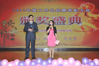 大會現(xiàn)場 財務(wù)部經(jīng)理馮小龍和網(wǎng)絡(luò)部李文芳主持了此次盛典