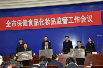 2013年3月13日,由濟南市食品藥品監(jiān)督管理局主辦的“濟南市保健食品化妝品監(jiān)管工作會議”在龍奧大廈隆重召開,來自濟南市及各縣(市)區(qū)監(jiān)管系統(tǒng)一線的執(zhí)法工作人員參加了此次會議。會議由濟南市食品藥品監(jiān)督管理局?;庩悘V銀處長主持,濟南市食品藥品監(jiān)督管理局衣光軍副局長、保化處杜曉偉科長、保化處朱銀和科長出席會議,我公司和山東天地健生物工程有限公司、山東福瑞達(dá)生物工程有限公司參加了此次會議,并上臺領(lǐng)取了“濟南市保健食品化妝品監(jiān)管實踐基地”的標(biāo)牌。