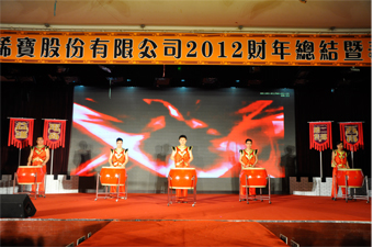 陽春四月,春染濟(jì)南,生機(jī)無限。2013年4月17日,“山東新稀寶股份有限公司2012財(cái)年總結(jié)暨表彰大會(huì)”在黃臺(tái)大酒店齊魯廳隆重開幕。來自醫(yī)藥事業(yè)部、電商事業(yè)部的全體精英以及后勤各職能部門、生產(chǎn)基地和孕嬰事業(yè)部的部分代表共計(jì)300余人參加了此次盛會(huì)。董事長(zhǎng)湯傳忠先生、常務(wù)副總經(jīng)理杜征國(guó)先生、副總經(jīng)理鄭朝霞女士及其他高層領(lǐng)導(dǎo)共同見證了這一盛舉。會(huì)場(chǎng)內(nèi)充滿了濃濃“旌旗獵獵會(huì)英雄,戰(zhàn)鼓隆隆震天地”的戰(zhàn)場(chǎng)古風(fēng),自信熱情的笑臉洋溢著新稀寶人火熱的激情,飄揚(yáng)的戰(zhàn)旗、雷動(dòng)的鼓聲展現(xiàn)了新稀寶人誰與爭(zhēng)鋒、舍我其誰的霸氣與豪情。