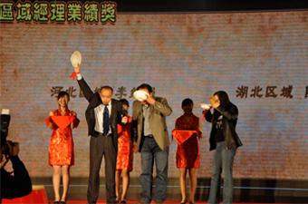 電商事業(yè)部的部分人員上臺(tái)發(fā)表感言 美酒敬英雄