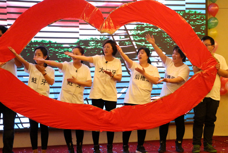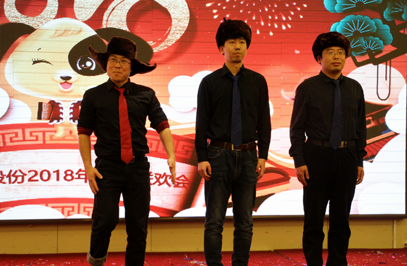 總結表彰大會結束后迎來了萬眾期待的新春聯(lián)歡會,后勤所有員工共分為四個代表隊,分別為財孕隊、相親相愛一家人隊、玉蘭隊和C哩C哩隊,四個代表隊為大家?guī)砹司实墓?jié)目。首先出場的是財孕隊的廣場舞《火了火了火》,他們用熱情之火燃爆全場;相親相愛一家人的交誼舞《愛的華爾茲》為大家?guī)砹瞬灰粯拥睦寺?,玉蘭隊的《大王叫你來巡山》活潑俏皮,C哩C哩隊的爵士舞《C哩C哩》引爆全場將晚會推向高潮。伴隨著歌曲《尊道貴德》,帶領大家感受道與德帶來的寧靜與莊重,小品《在那遙遠的地方》除了為大家?guī)須g笑外,也讓我們感受到愛與奉獻的可貴。隨后畫風一轉,小型舞臺劇《喀秋莎》、《拔牙》形式新穎,幽默搞笑,為大家?guī)砹藙e樣的觀感體驗。除此之外,還有原創(chuàng)作品《三句半》緊扣大家的工作和公司的發(fā)展,讓我們在歡笑中回顧了這一年的歷程。后勤的女將們帶來的小品《女神和女漢子》,逗趣的表演、傳神的刻畫將整場晚會再次推向高潮;晚會在歌曲《365個祝?!分新湎箩∧唬钊嘶匚稛o窮。