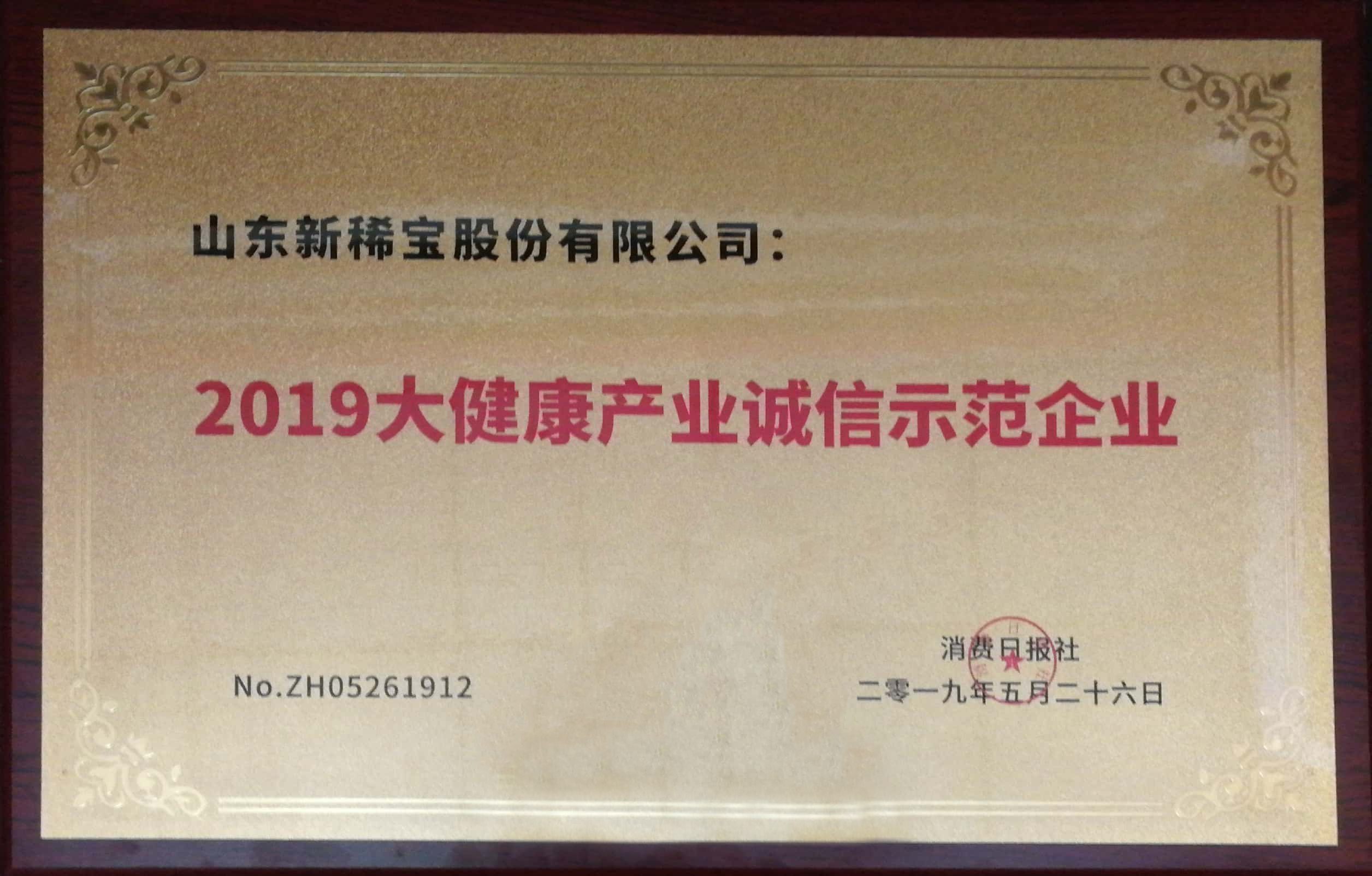被消費日報社評為“2019大健康產業(yè)誠信示范企業(yè)”