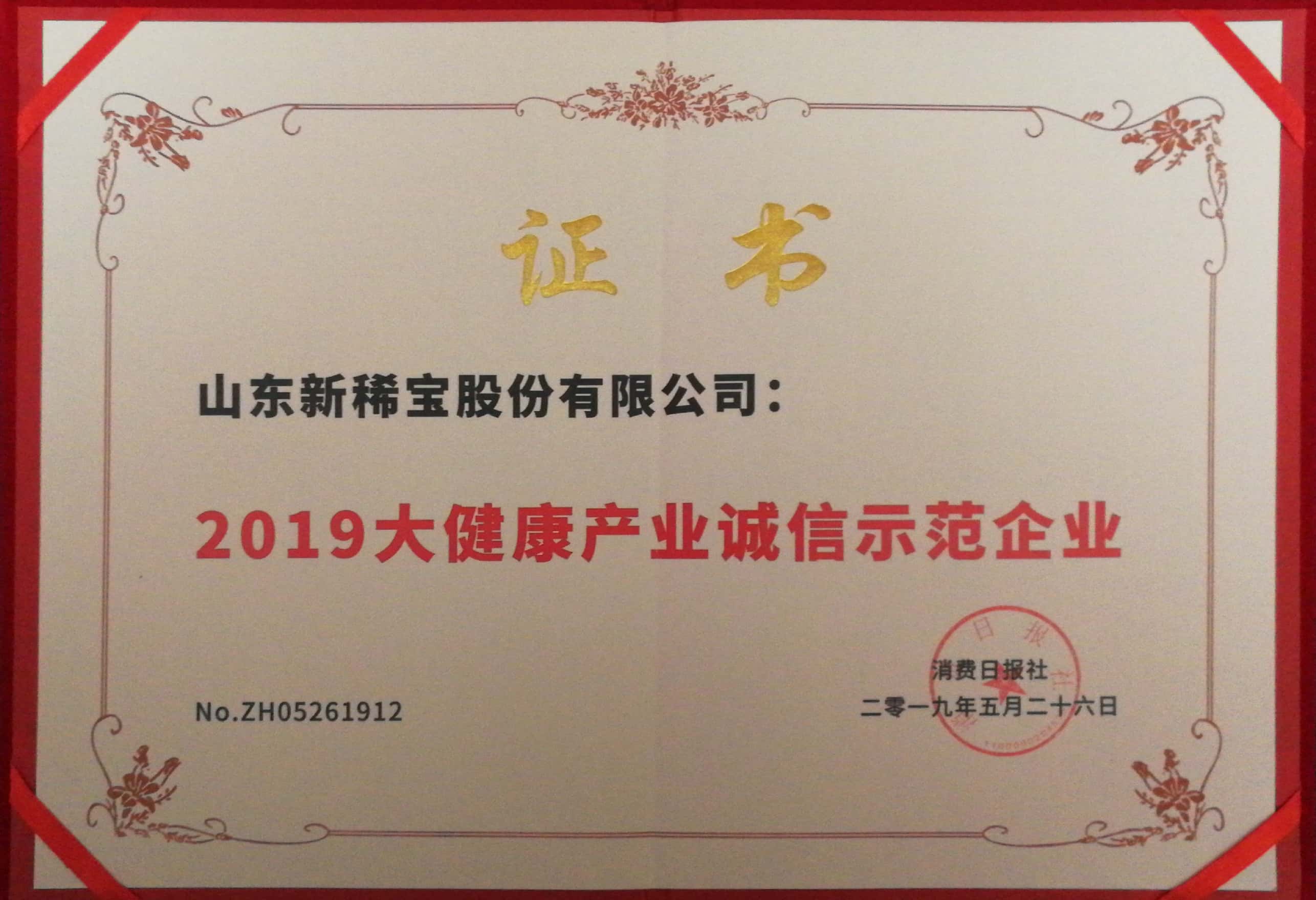 “新稀寶”被消費日報社評為“2019大健康產業(yè)十大公...