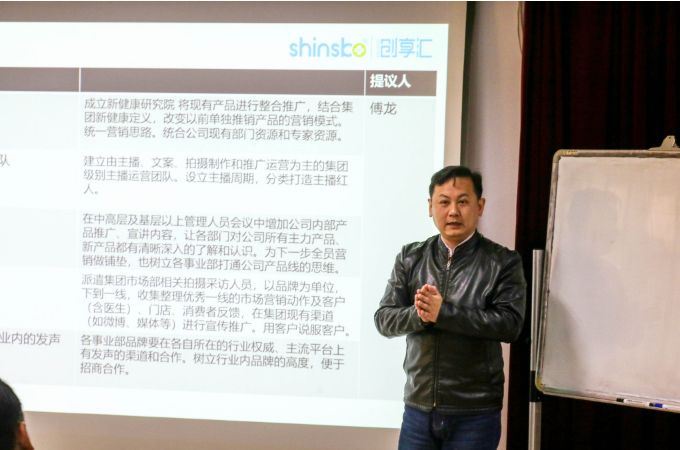 本次分享會共有三位提案人進行提案。孕嬰營銷中心傅龍?zhí)岢?span>5個議題,分別是:建立新稀寶新健康研究院,將現(xiàn)有產(chǎn)品進行整合推廣,統(tǒng)一營銷思路;建立集團層級主播團隊,分類打造主播紅人;開設(shè)內(nèi)部營銷產(chǎn)品說明會,在中高層及基層以上管理人員會議中增加公司內(nèi)部產(chǎn)品推廣,讓大家了解產(chǎn)品的同時為全員營銷做鋪墊;進行市場采風,收集整理優(yōu)秀一線的市場營銷動作及客戶、門店、消費者反饋,在集團現(xiàn)有渠道進行宣傳推廣;打通各品牌在各自行業(yè)內(nèi)的發(fā)聲平臺,樹立行業(yè)內(nèi)品牌的高度,便于招商合作。
