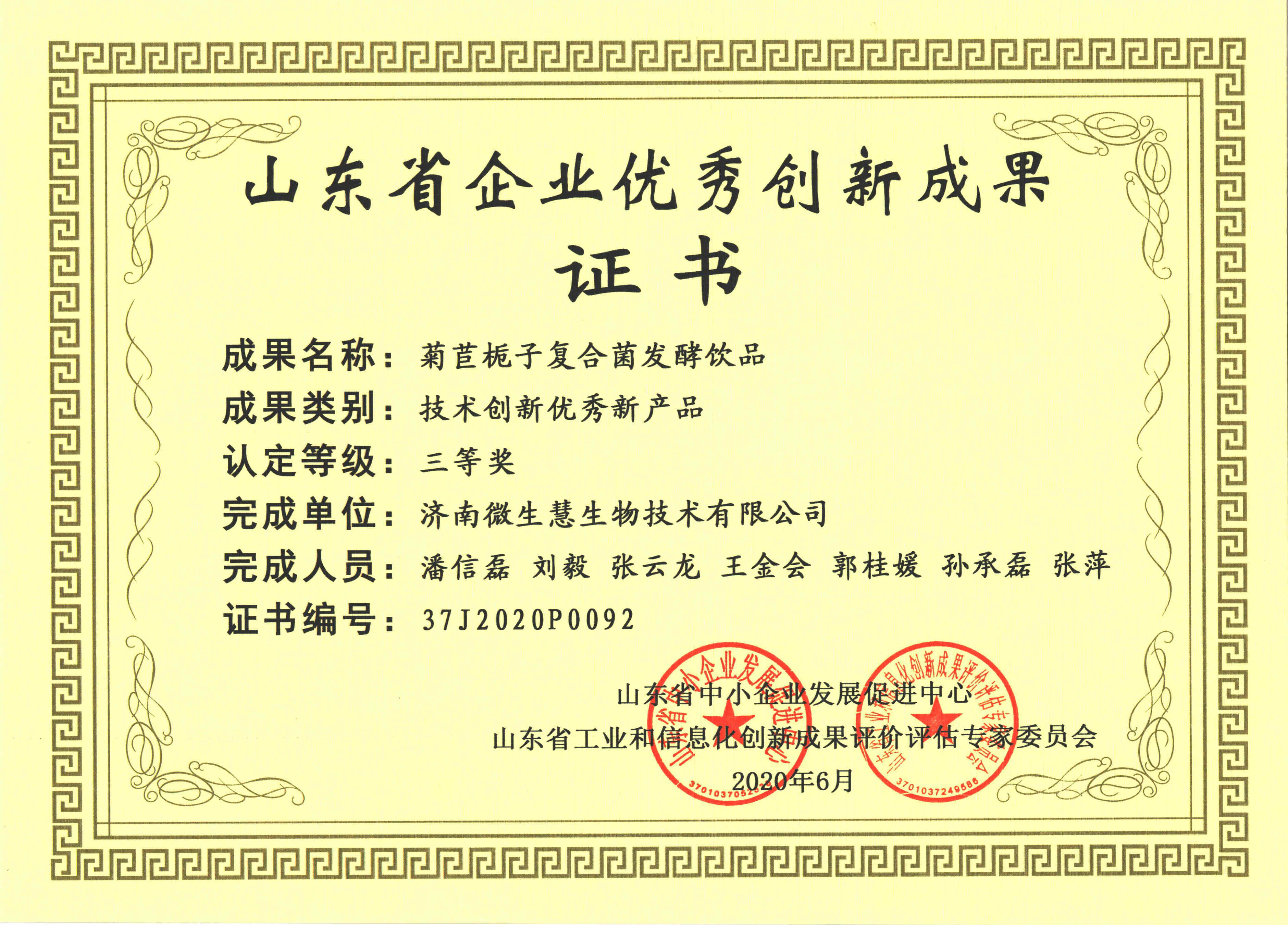 菊苣梔子復合菌發(fā)酵飲品獲得技術創(chuàng)新優(yōu)秀新產(chǎn)品三等獎